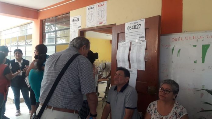 Ante esta situación, efectivos policiales en coordinación con personal de la ONPE pretenden cerrar la mesa de sufragio, por lo que los electores no podrán emitir su voto y tendrían que cancelar la multa correspondiente.