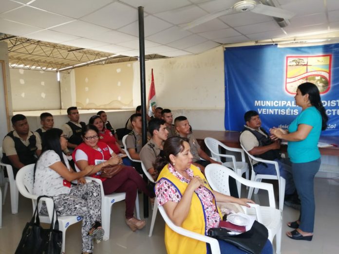 Miembros de la policía y el serenazgo del distrito de Veintiséis de Octubre son capacitados en el procedimiento de las acciones para la atención de casos de violencia en el marco de la Ley 30364, ley contra la violencia hacia la mujer y los integrantes del grupo familiar.