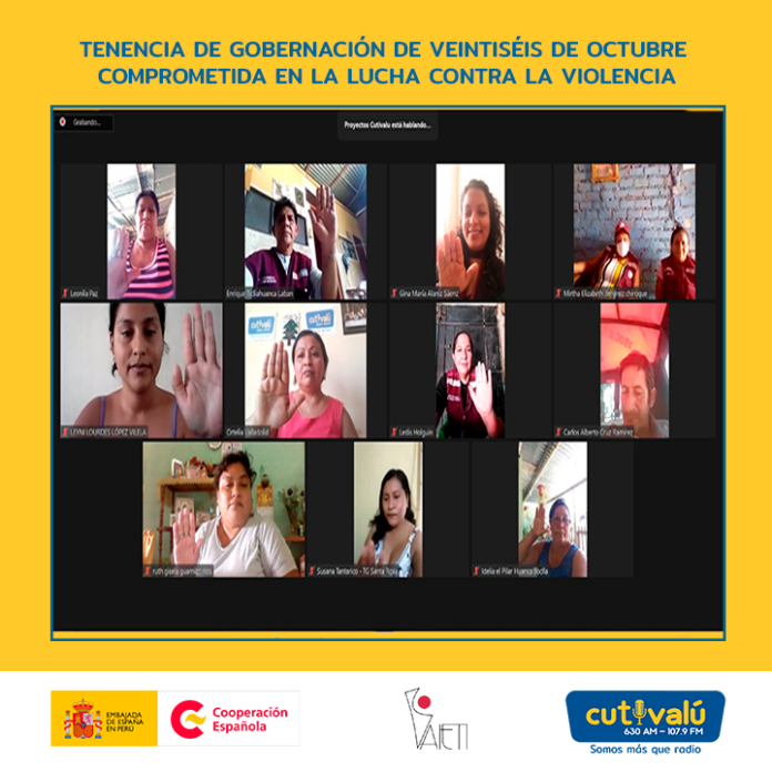 Más de 125 representantes de las Organizaciones Sociales de Base del distrito de Veintiséis de Octubre participan, desde hace dos años, del proyecto “Fortalecer la articulación entre Estado y sociedad civil para la prevención y la reducción de la violencia de género en Piura” ejecutado por Cutivalú conjuntamente con la Agencia Española de Cooperación Internacional Para el Desarrollo (AECID) y la Asociación de Investigación y Especialización Sobre Temas Iberoamericanos (AIETI).