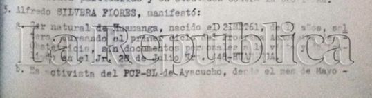 Alfredo Silvera Flores reconoció que era militante activo de Sendero Luminoso en el aparato terrorista de Huamanga.