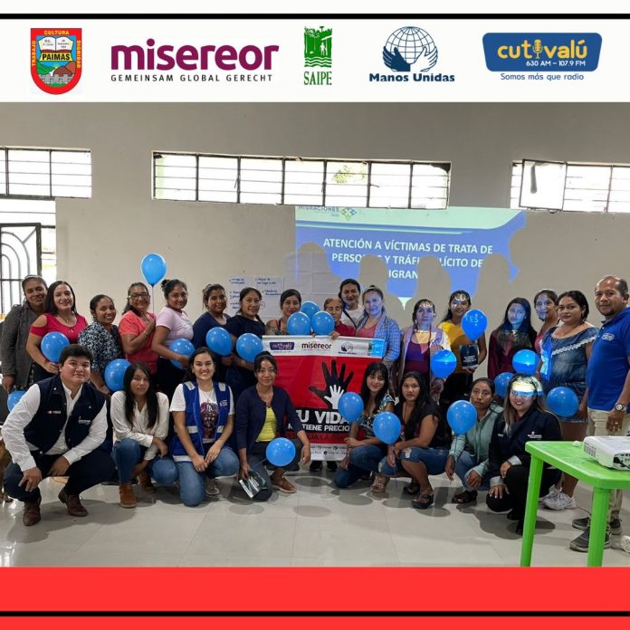 El proyecto “Tu vida no tiene precio, denuncia la trata” se inició en noviembre pasado, tendrá una duración de tres años, y es ejecutado por Cutivalú en alianza con Saipe, con el financiamiento de Misereor y Manos Unidas. Se desarrolla en seis distritos de la región Piura: Veintiséis de Octubre, Paita, Tambogrande, Las Lomas, Suyo y Paimas; también en el distrito de Nieva, en la región Amazonas.