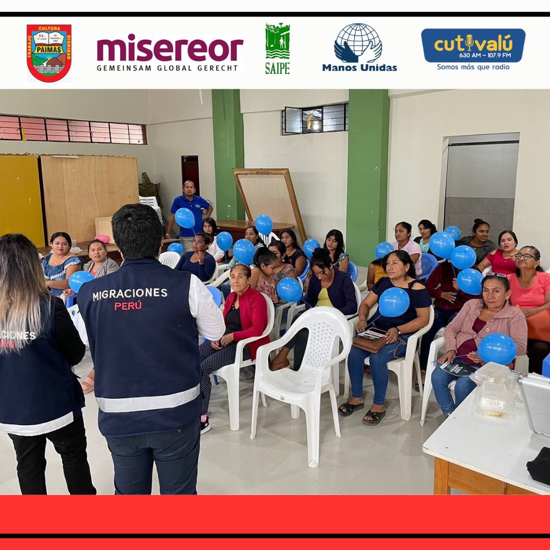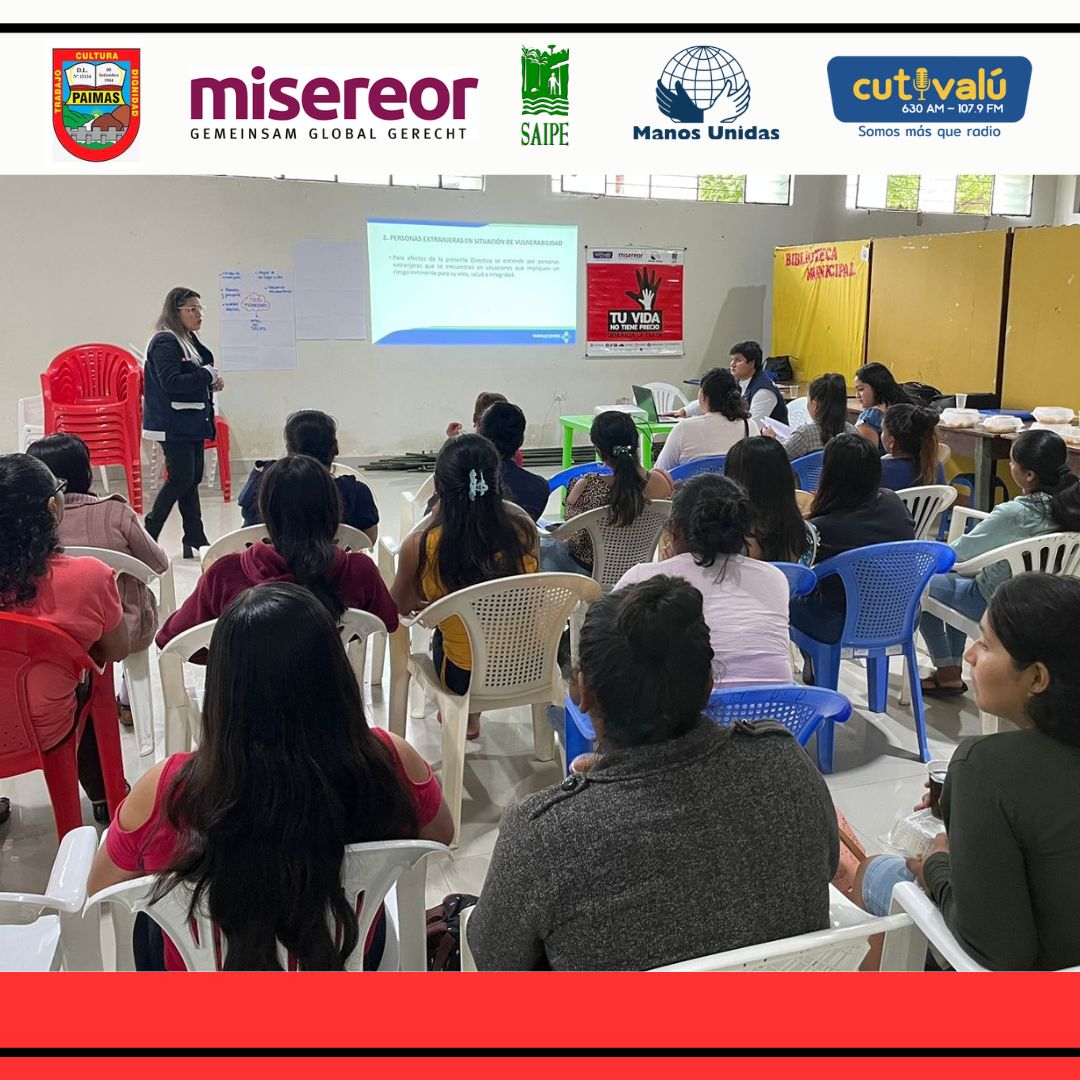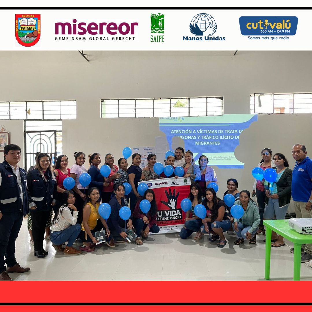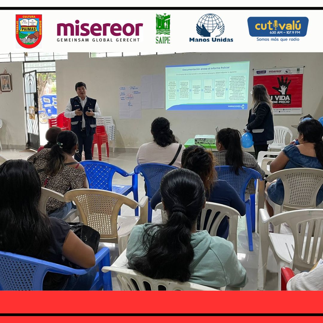 24 mujeres lideresas de diversos sectores del distrito del distrito de Paimas participaron en la cuarta jornada de capacitación para la prevención del delito de trata de personas, en el marco del proyecto «Tu vida no tiene precio, denuncia la trata”, ejecutado por Cutivalú, en coordinación con la jefatura zonal de Migraciones Piura.