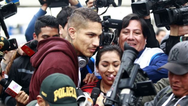 Sobre las 9:20 de la mañana, el delantero peruano Paolo Guerrero llegó a Lima e hizo su salida del aeropuerto Jorge Chávez en medio del júbilo de cientos de hinchas que llegaron para mostrarle su apoyo.