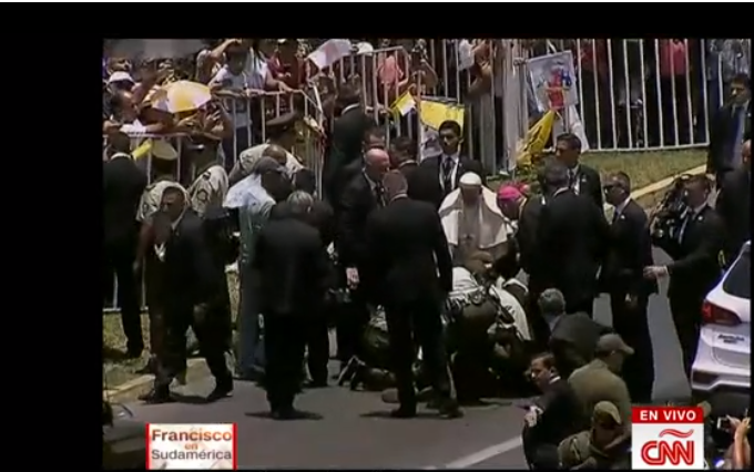 El papa Francisco salió de su papamóvil en Iquique, Chile, este jueves para ayudar a una policía herida.