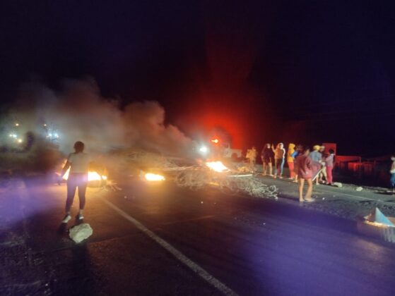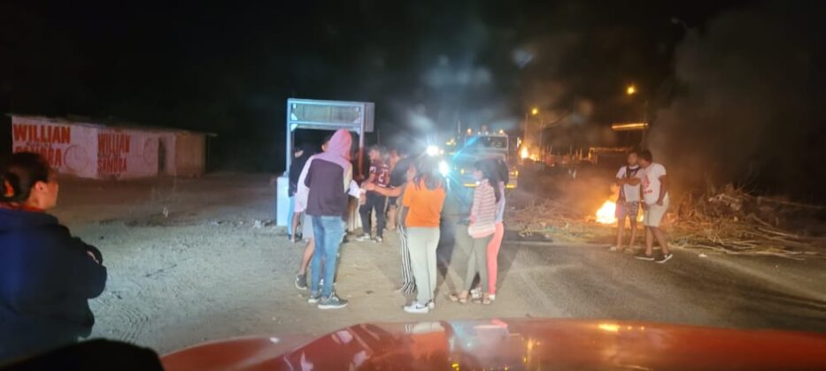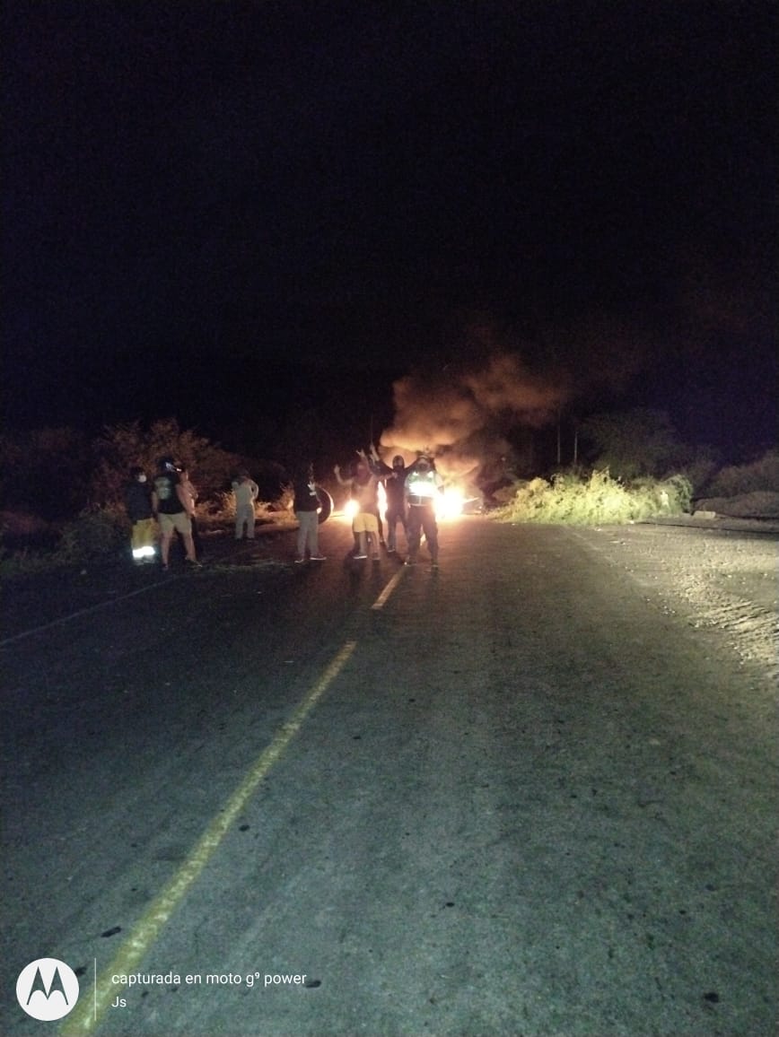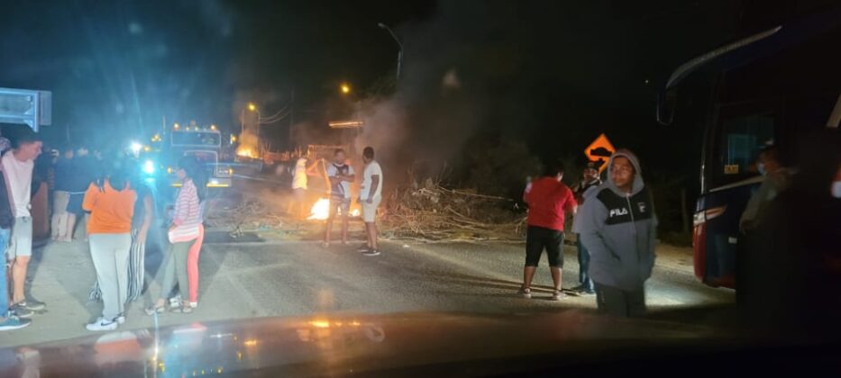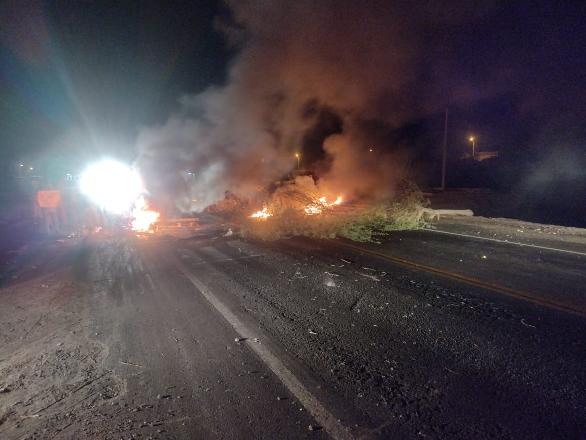 Carretera Sullana- Paita, a la altura del km 33 (Entrada de Pucusulá). Un aproximado de 30 personas han bloqueado la vía con piedras y quemando llanatas, impidiendo el normal tránsito vehicular.