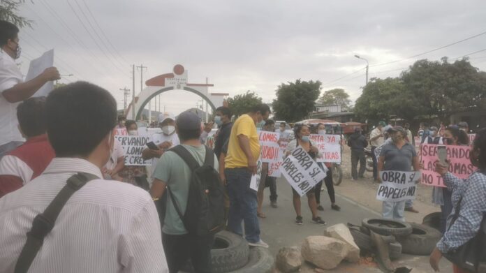 La población de Las Lomas inició este lunes un paro indefinido por la obra de agua y alcantarillado que empezó a ejecutarse desde 2012, pero hasta la fecha no es culminada. Los manifestantes piden que la ministra de Vivienda y Saneamiento, Solángel Fernández, quien se encuentra en Piura, intermedie ante el Gobierno regional para que se concluya la obra abandonada hace diez años.