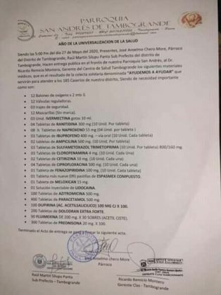 “Quiero agradecer de todo corazón a los tambograndinos y tambograndinas por haber brindado un granito de arena en esta campaña de solidaridad. Lo que se ha podido comprar con la recaudación es para ayudar a nuestros hermanos que padecen de esta enfermedad. Que dios los bendiga”, manifestó el párroco.