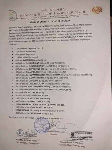 El sacerdote José Chero, quien lideró la campaña, agradeció a la población y a las empresas de Tambogrande por sumarse a la iniciativa para ayudar a las personas infectadas con el nuevo coronavirus.