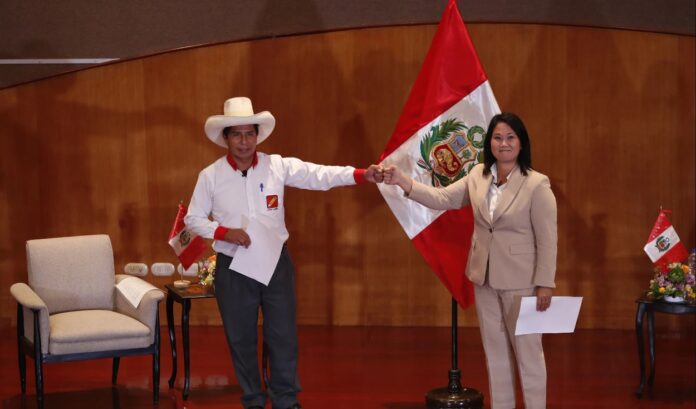 Los candidatos presidenciales Pedro Castillo y Keiko Fujimori, firmaron la Proclama Ciudadana con miras a la segunda vuelta electoral. Ambos candidatos se comprometieron en cumplir con el orden democrático, derechos humanos y retirarse del poder tras cinco años en un eventual gobierno.