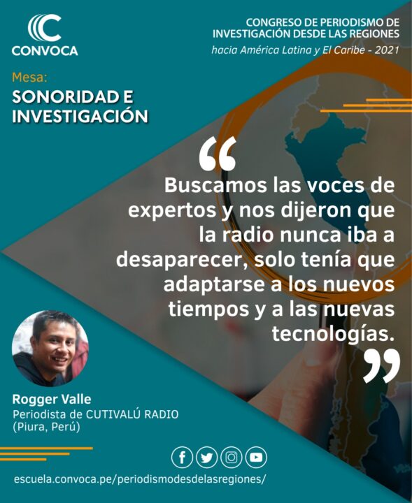 Rogger Valle garcía, periodista de Cutivalú Piura, participó en la mesa «Podcast y periodismo: Sonoridad e investigación» del Congreso de Periodismo Desde Las Regiones 2021.