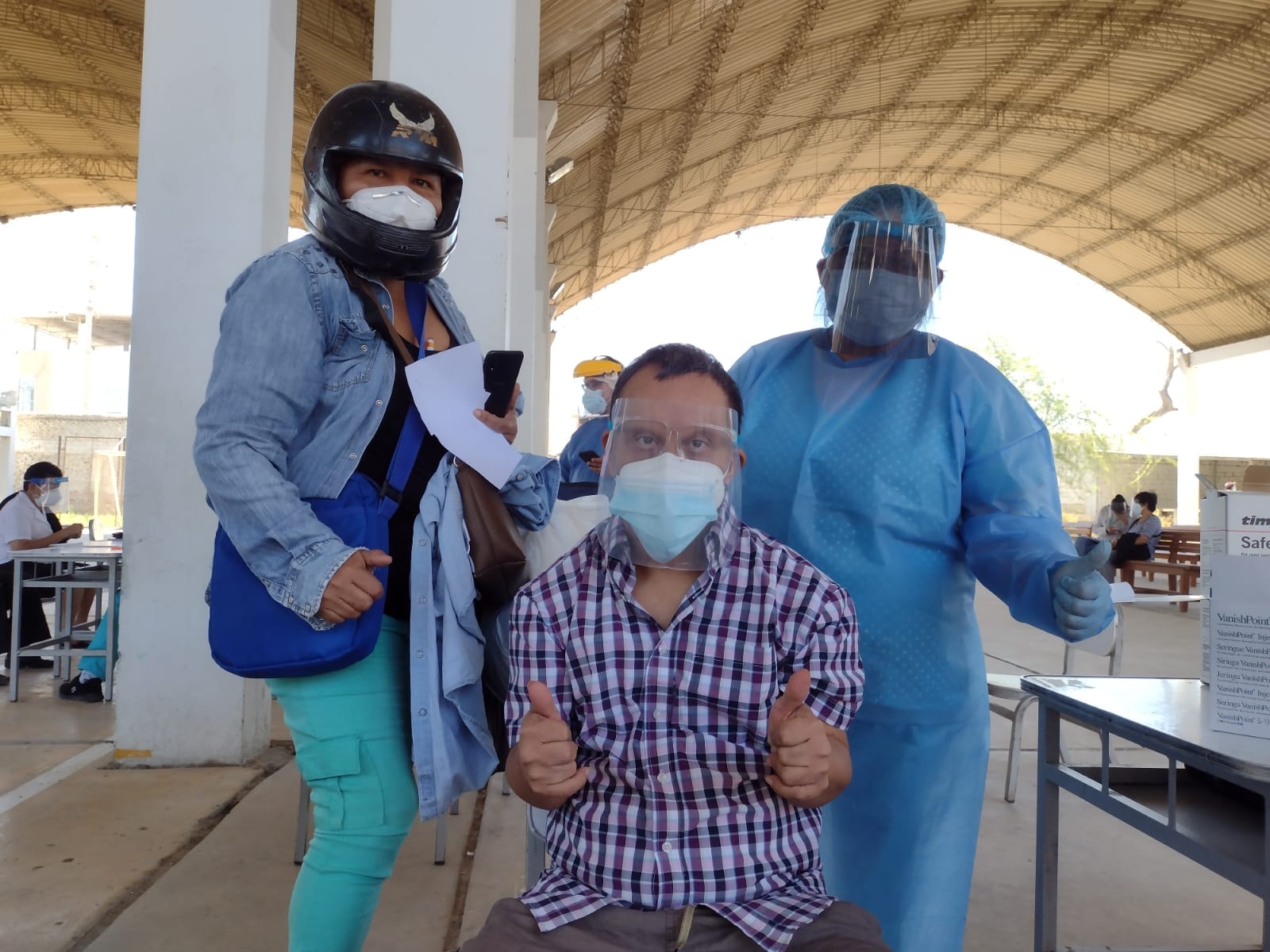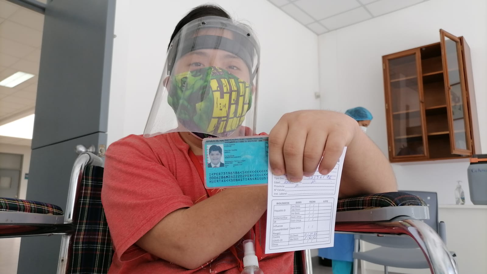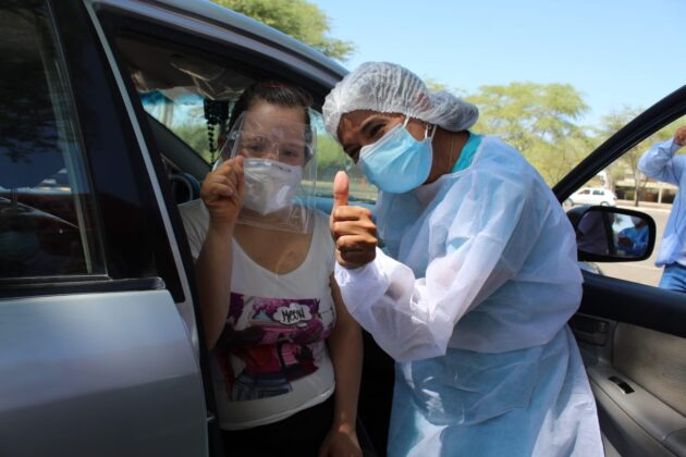 Los padres de María del Rosario Castro Talledo de 34 años, natural de Piura, se mostraron muy contentos al verla recibir su primera dosis de la vacuna tipo Pfizer a su hija. «Ella va estar protegida, sabemos que son personas de riesgo y agradecemos al Gobierno, por esta oportunidad«, dijeron.