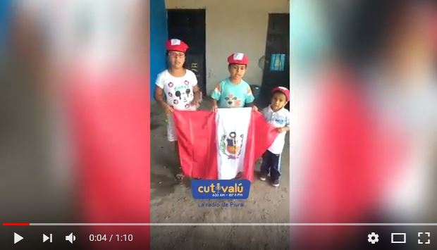 Tres hermanitos del caserío de Yuscay en el distrito de Las Lomas (Piura) grabaron, con ayuda de sus padres, un pequeño vídeo para alentar a la selección peruana, que hoy a las 06:30 de la tarde se enfrenta a su similar de Colombia.