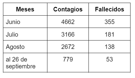 De acuerdo a la información publicada en la sala situacional de la Diresa Piura, durante las últimas semanas se reportó un descenso en los contagios por la Covid. Del 20 al 26 de septiembre se detectaron 162 nuevos casos de coronavirus. Del 13 al 19, 165 personas resultaron positivos al virus  y del 6 al 12 de este mismo mes se contabilizaron 200 contagios.