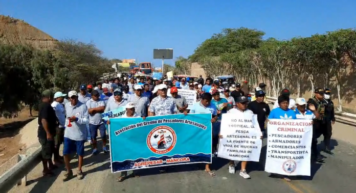 “No al mar tropical. La pesca artesanal es la fuente de vida de muchas familias de Máncora” y »Somos pescadores, no delincuentes”, fueron algunas de las frases se alcanzaron a leer durante su movilización.