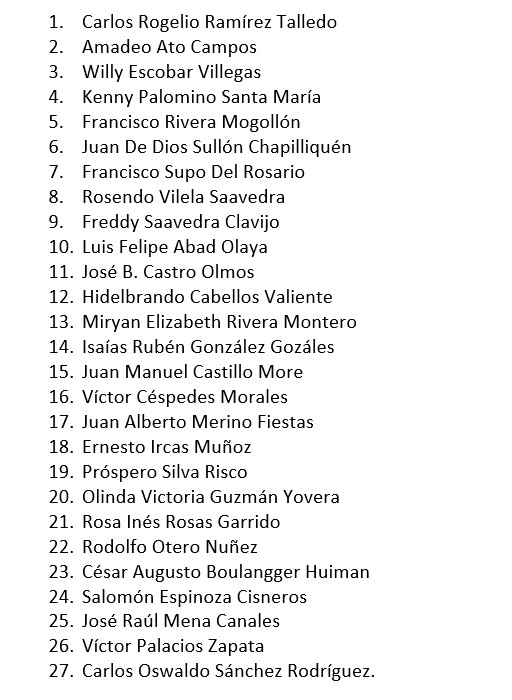 Lista de trabajadores denunciados penalmente por apropiación ilíctia y falsedad documental: