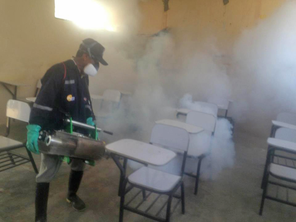 El funcionario señaló que hasta el momento vienen fumigando 50 colegios en toda la provincia, actividad que se inició el miércoles en Cura Mori donde fumigaron 28 centros educativos.