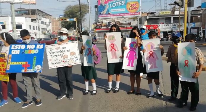 Piura: ASPOV realiza plantón en semáforos por Día Mundial de la Lucha contra el Sida