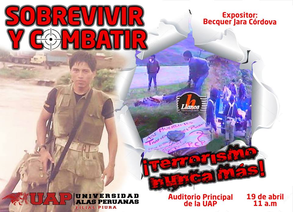 Como parte del Día de los Defensores de la Democracia, la Universidad Alas Peruanas (UAP) invita a los piuranos y piuranas a participar de la conferencia “Sobrevivir y combatir, terrorismo nunca más”, a cargo del técnico del Ejército (r) Becquer Jara Córdova.