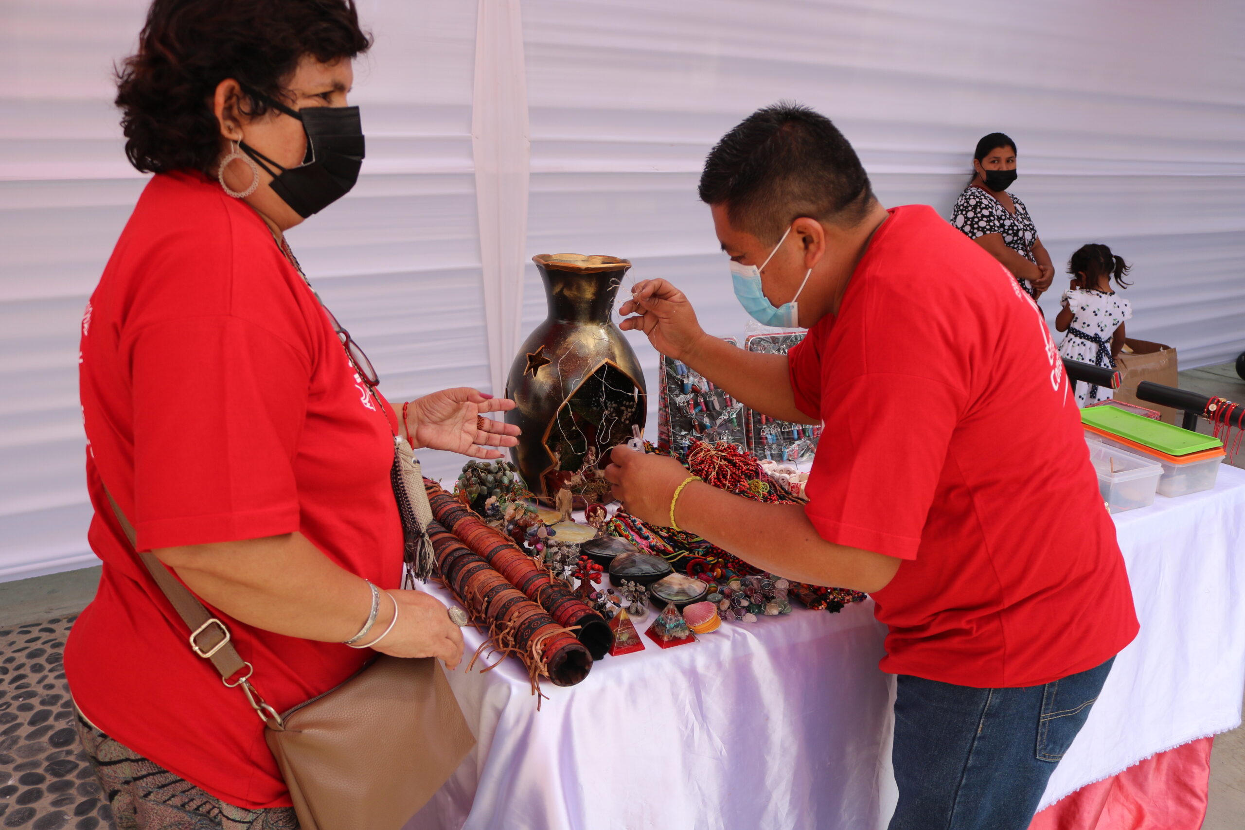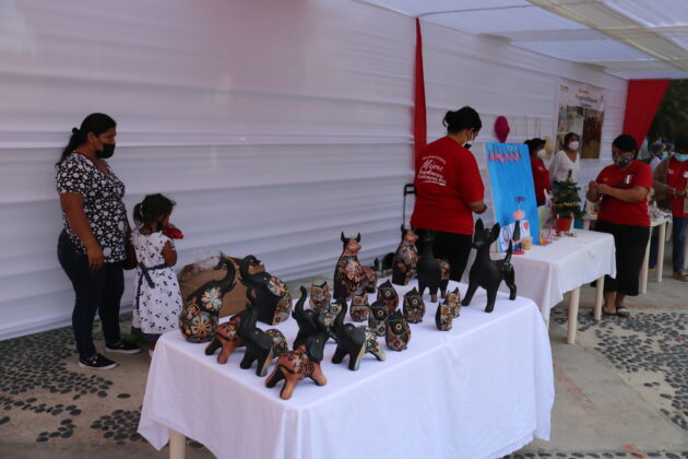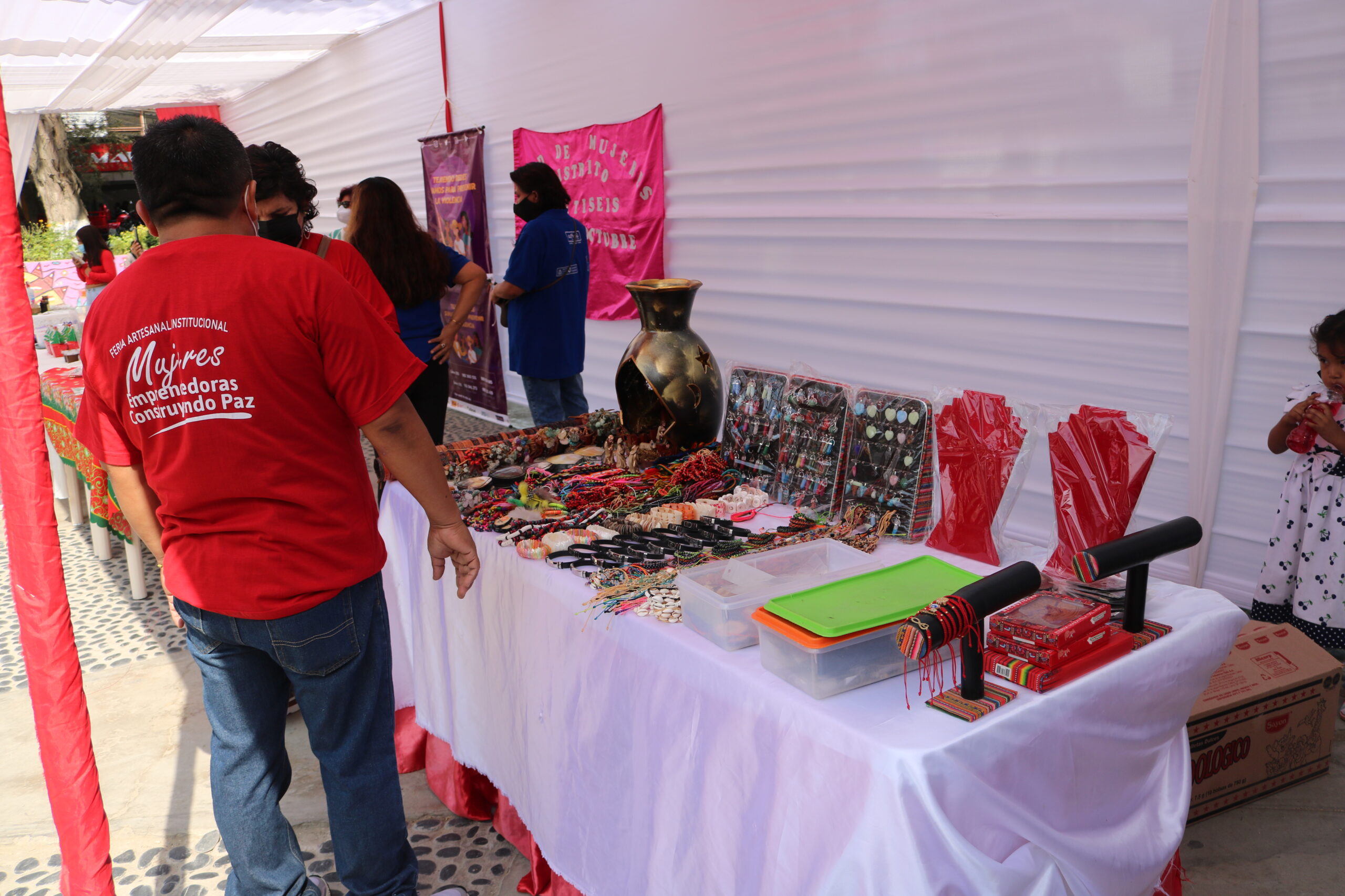 Este sábado 4 de diciembre continúa la feria regional interinstitucional «Mujeres emprendedoras construyendo paz», donde participan artesanos y artesanas de toda la región Piura con la venta de chifles, natillas, chocolates, adornos navideños, esculturas de cerámica, aretes, collares, entre otros productos comestibles y ornamentales.