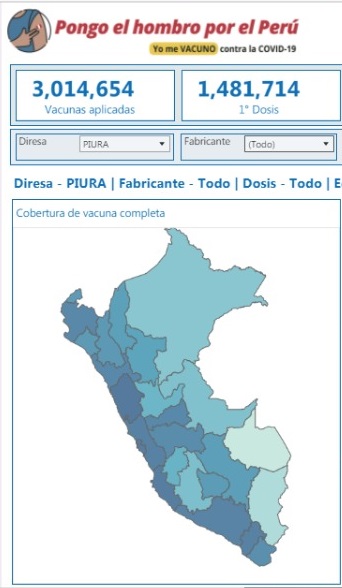 “En Piura la vacunación ha tenido un buen recibimiento. Actualmente el 81% de la población ya cuenta con la segunda dosis. Mientras que el 14% ya se aplicó la dosis de refuerzo”, informó la funcionaria.