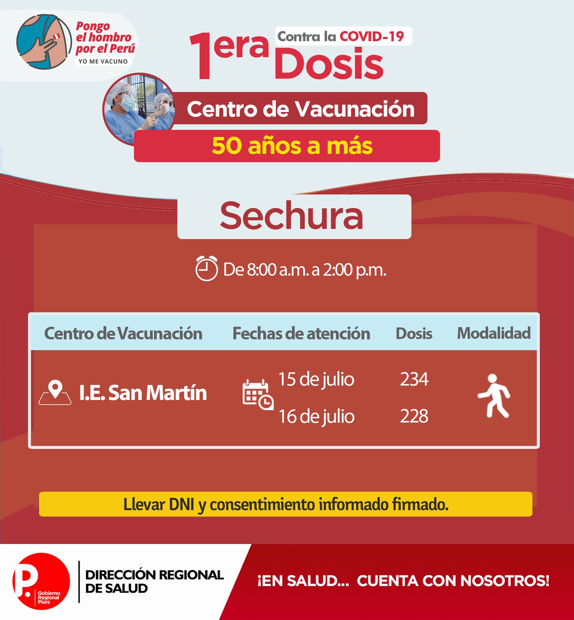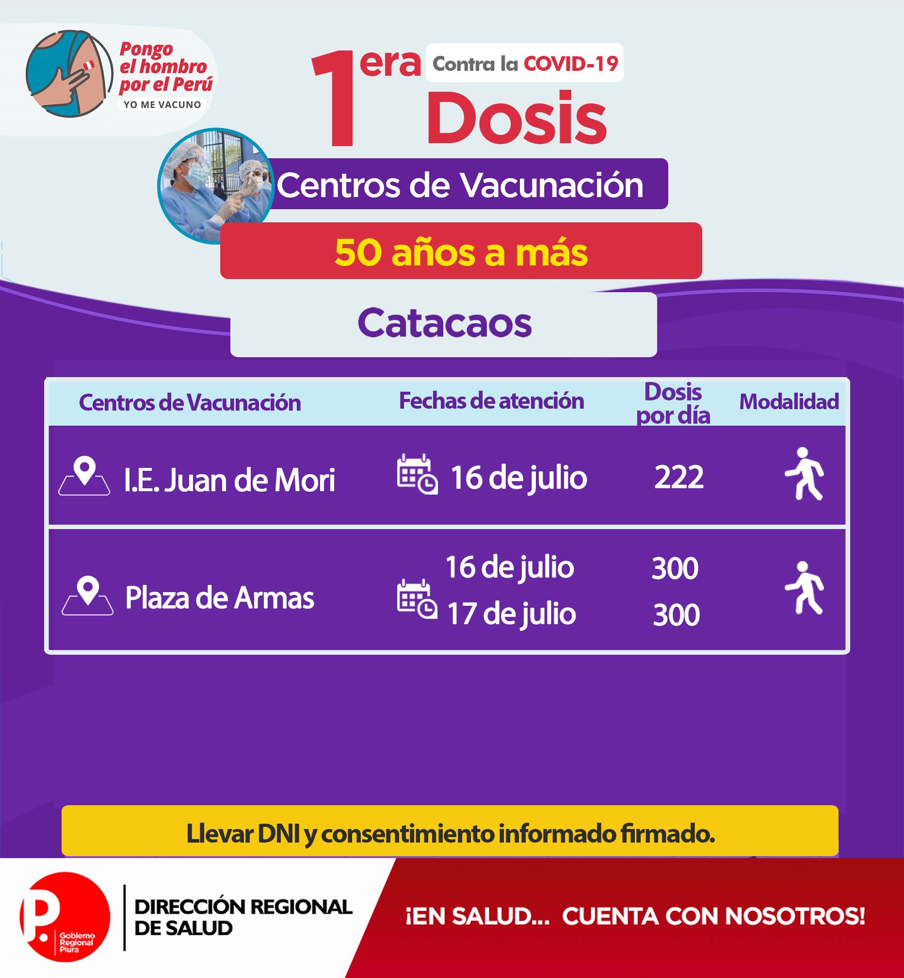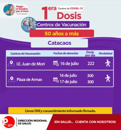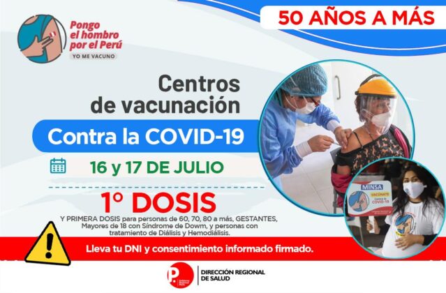 Se exhorta a la población a acudir con doble mascarilla, protector facial, respetar el distanciamiento; además llevar DNI y hoja de consentimiento firmado.