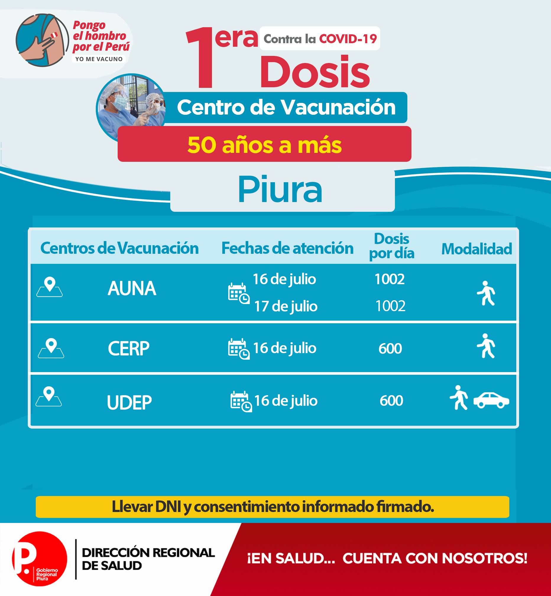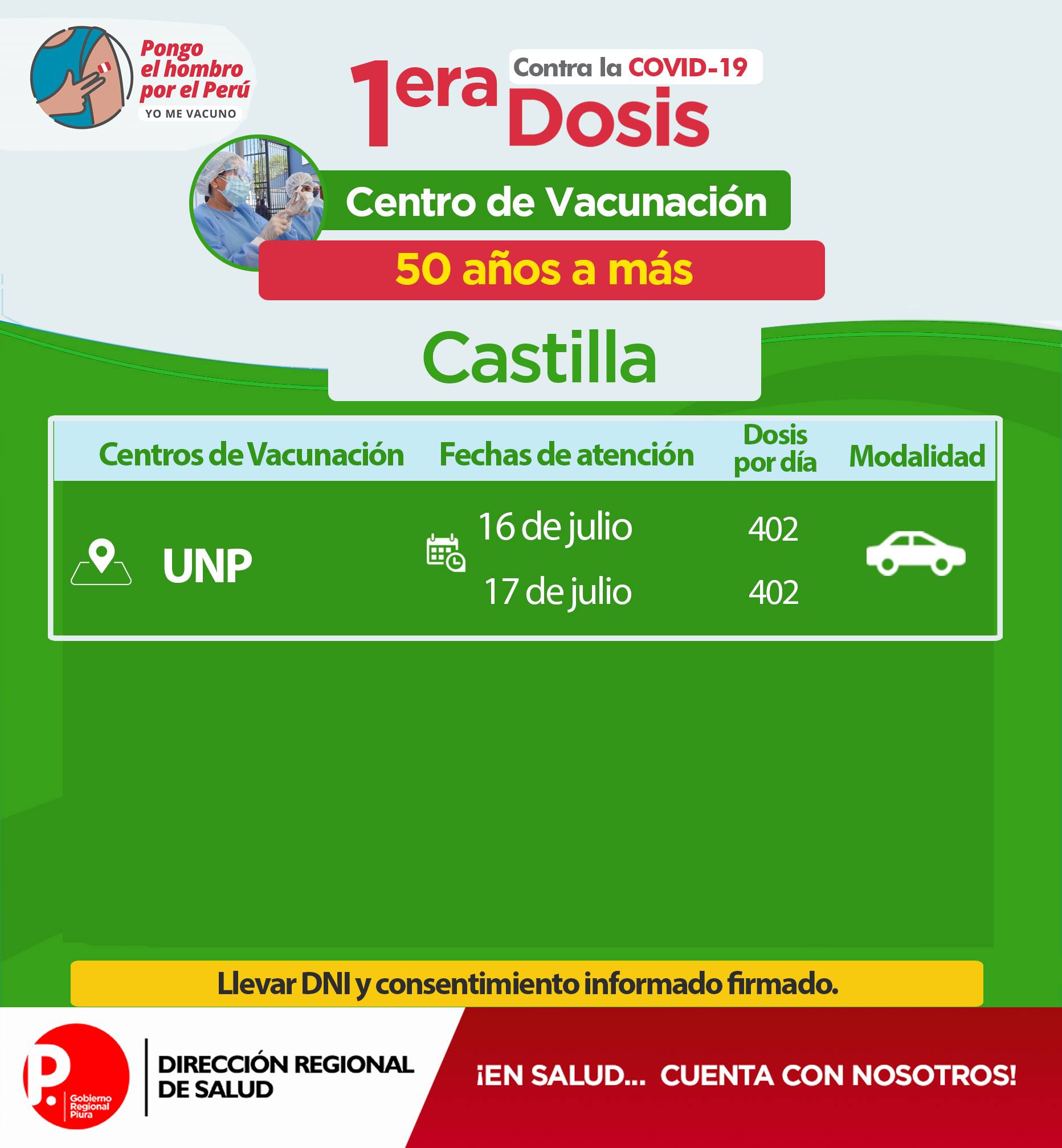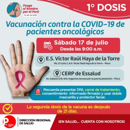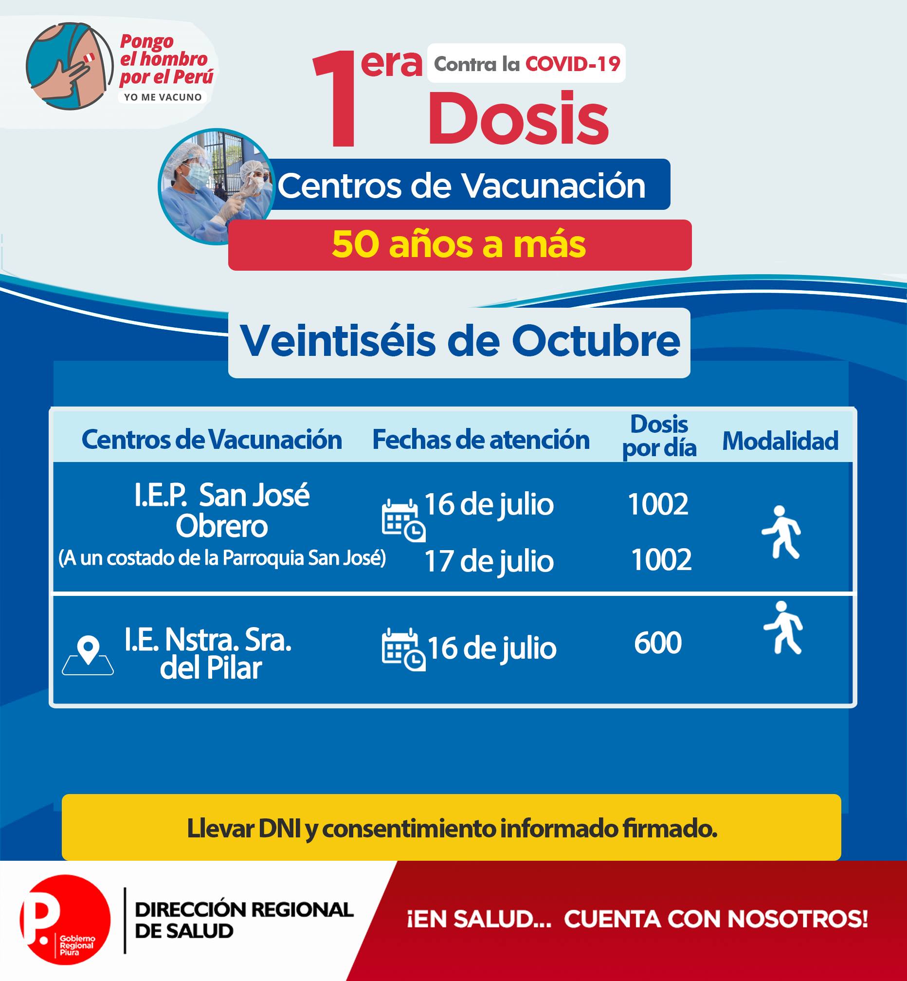 Se exhorta a la población a acudir con doble mascarilla, protector facial, respetar el distanciamiento; además llevar DNI y hoja de consentimiento firmado.