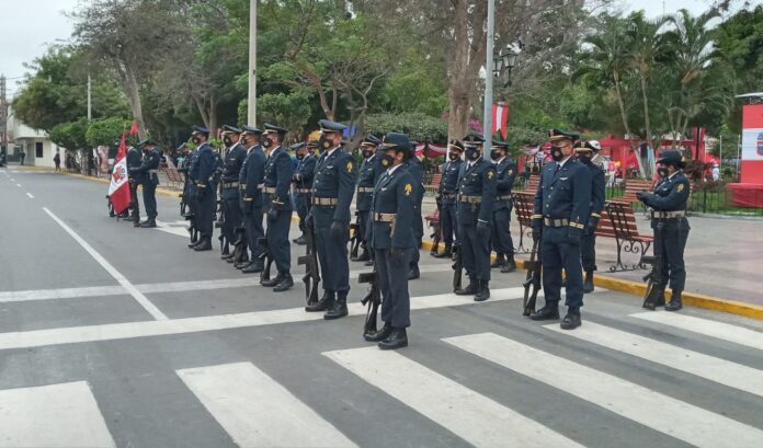 El gobernador Servando García Correa realiza el izamiento del Pabellón Nacional. Por otro lado, el alcalde de Piura, Juan José Díaz Dios, iza la bandera de Piura. Así mismo se realiza el develamiento de la placa ´del Bicentenario del Perú.