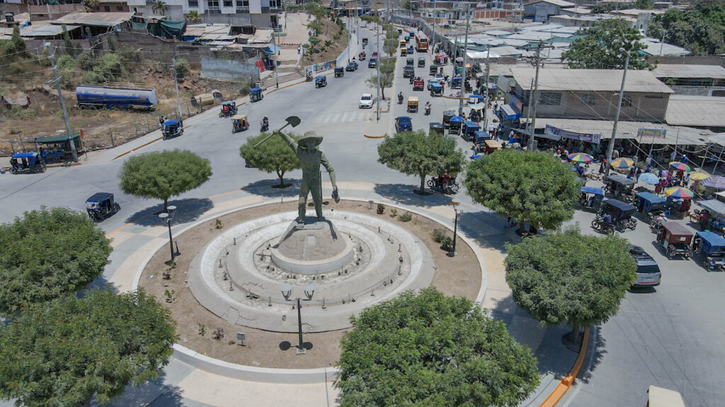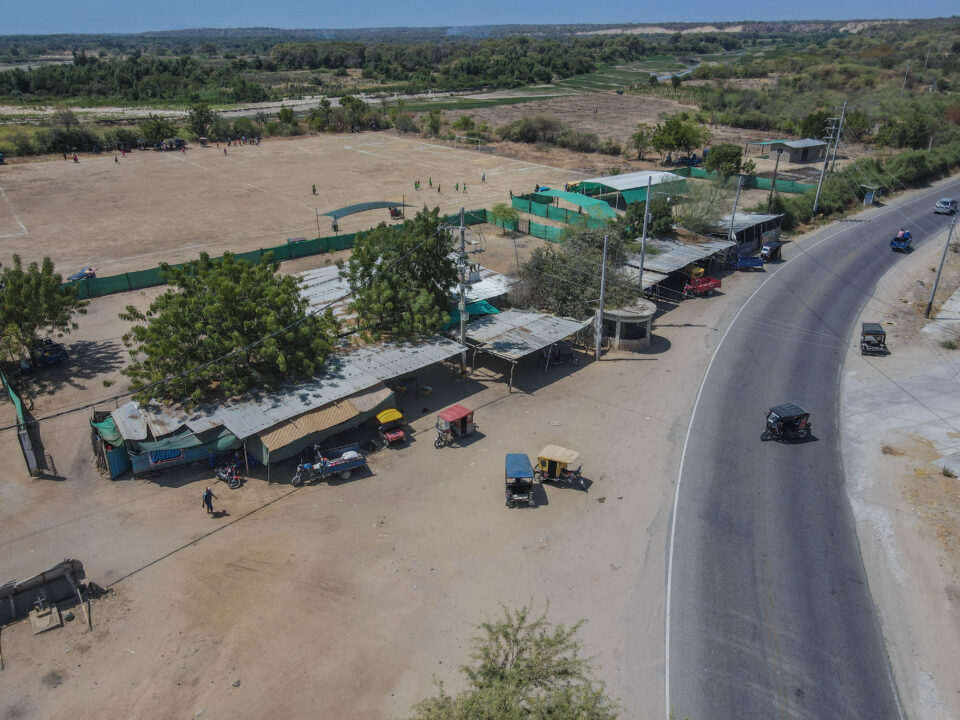 Es domingo y son las 10 de la mañana en el centro poblado Malingas, del distrito de Tambogrande, en la región Piura. El sol brilla con toda su fuerza, los mototaxistas se resguardan bajo la sombra de su paradero, los quioscos, farmacias y tiendas de fertilizantes esperan a los clientes. Un grupo de mujeres pega carteles en algunos locales y un grupo de niños uniformados prepara una exposición para la asignatura de un curso frente a su colegio.
