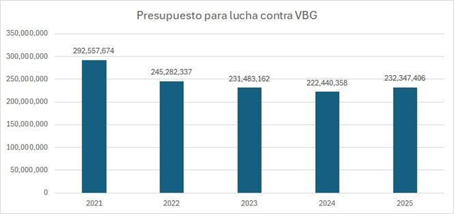 Según el Ministerio de Economía, el presupuesto destinado a este programa, para enfrentar la violencia basada en género, mostró una tendencia decreciente en los últimos años. En 2021 alcanzó su punto más alto con 292 millones 557 mil 674 soles, pero luego fue reduciéndose hasta llegar a 222 millones 440 mil 358 en 2024, la cifra más baja del periodo. Esto representa una reducción del 24% en apenas cuatro años, lo que implica menos recursos para prevención, atención y reintegración de las víctimas. Para 2025 se registra una ligera recuperación con un poco más de 232 millones de soles, aunque aún distante de los niveles de 2021.