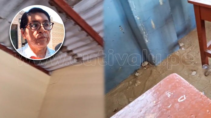 Más de 1600 estudiantes del colegio Magdalena Seminario Llirod estudian en aulas con huecos, arena y techos en mal estado. La directora Esterfilia Zapata exige al Gobierno Regional que acelere el proyecto de mejoramiento.
