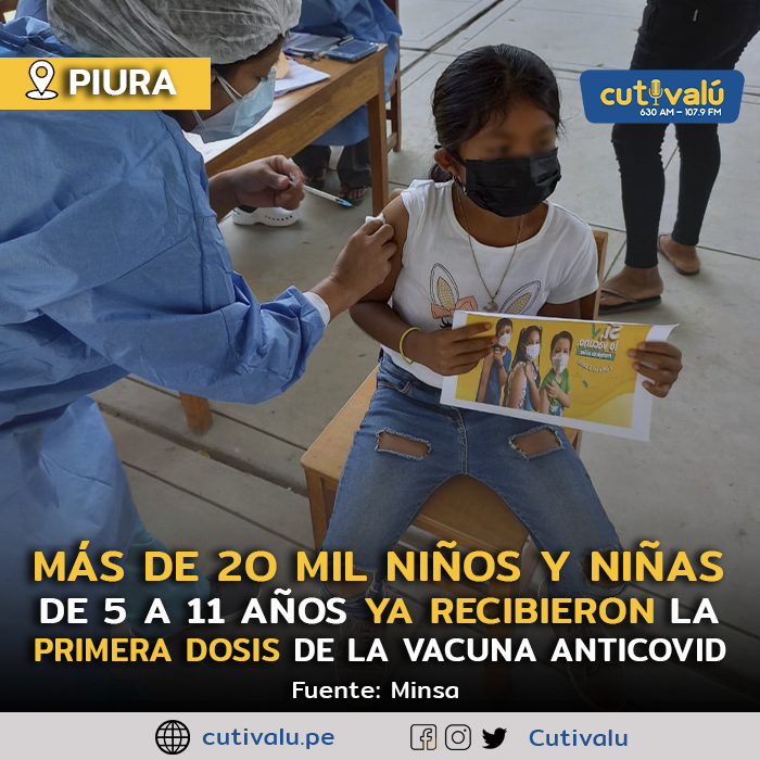 Más de 20 mil menores de 5 a 11 años han recibido la primera dosis de la vacuna contra la COVID-19 hasta la fecha, según el reporte del Repositorio Único Nacional de Información en Salud (Reunis) del Ministerio de Salud.