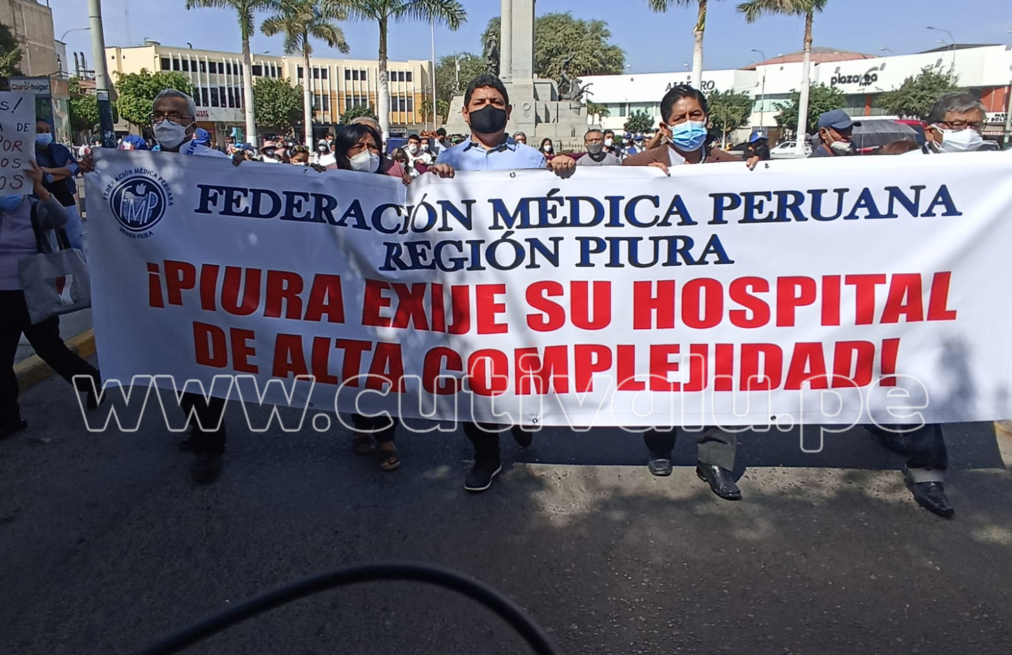 Sociedad Civil y colegios profesionales marcharon está mañana por las principales avenidas de la ciudad de Piura para exigir al Gobierno Central la construcción del hospital de Alta Complejidad. Los manifestantes llegaron hasta el Gobierno Regional para pedir de manera urgente un diálogo con el gobernador, Servando García.