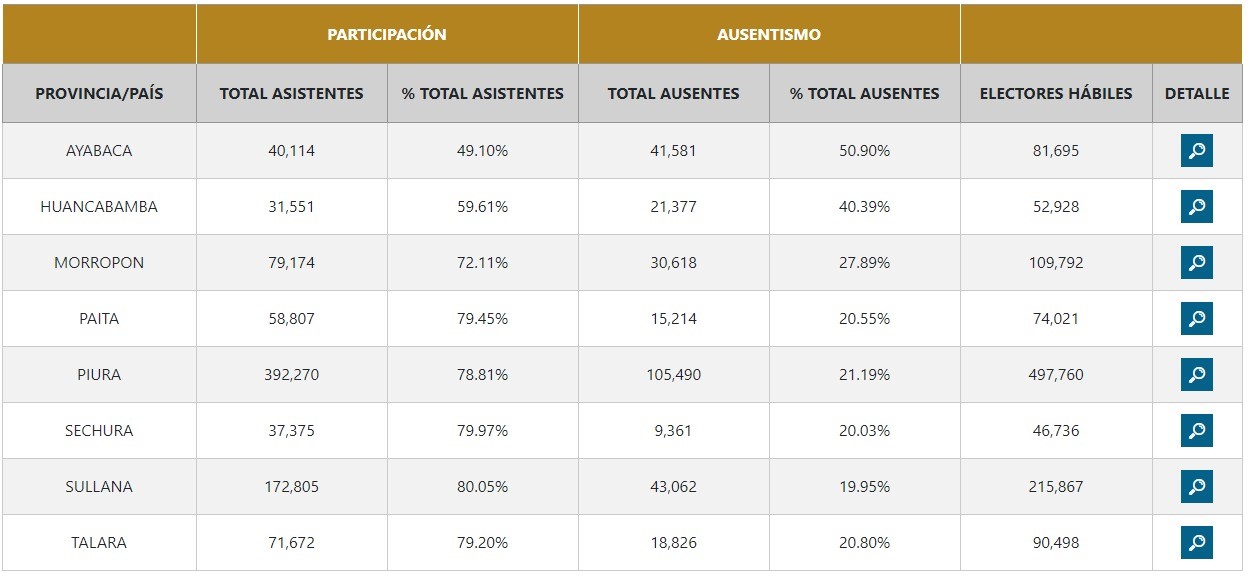 Pero los votos viciados no son la única cifra alta que arrojan los primeros resultados de la ONPE en Piura. Otros 285 mil 529 electores hábiles en la región Piura no acudieron a votar.