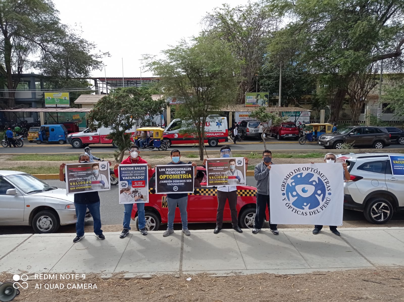 “Exigimos vacunas pronto”. Con esta arenga decenas de optometristas de la región Piura, llegaron hasta los exteriores de la Dirección Regional de Salud para exigir a las autoridades, ser considerados en la vacunación covid de manera urgente.