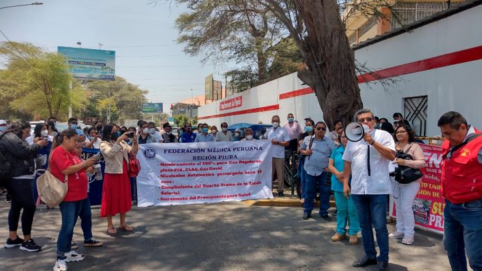 Los trabajadores del sector salud de Piura entre administrativos, enfermeras, técnicos de enfermería, laboratoristas y hasta médicos exigen al Gobierno Regional de Piura el cumplimiento del pacto colectivo que se firmó el 30 de junio del 2022.