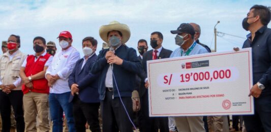 El presidente de la República, Pedro Castillo Terrones, llegó a la región Piura este miércoles 11 de agosto, junto a algunos ministros de Estado para la reunión con las autoridades locales, programada a las 9 de la mañana en la Universidad Nacional de Piura (UNP). Previo a ello, el Jefe de Estado se trasladó a … Sigue leyendo Piura: Presidente Castillo entrega cheque por S/ 19 millones para atención de familias afectadas por sismo