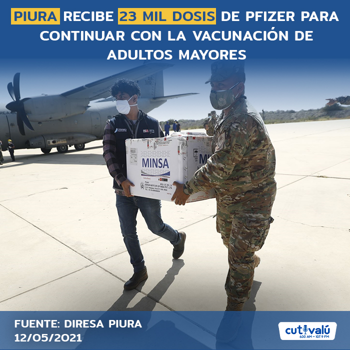 La mañana de este miércoles 12 de mayo llegaron a Piura 23 mil 400 dosis de Pfizer para continuar con la vacunación de los adultos mayores. Este es el lote más grande que recibe la región y que debió llegar la semana pasada.
