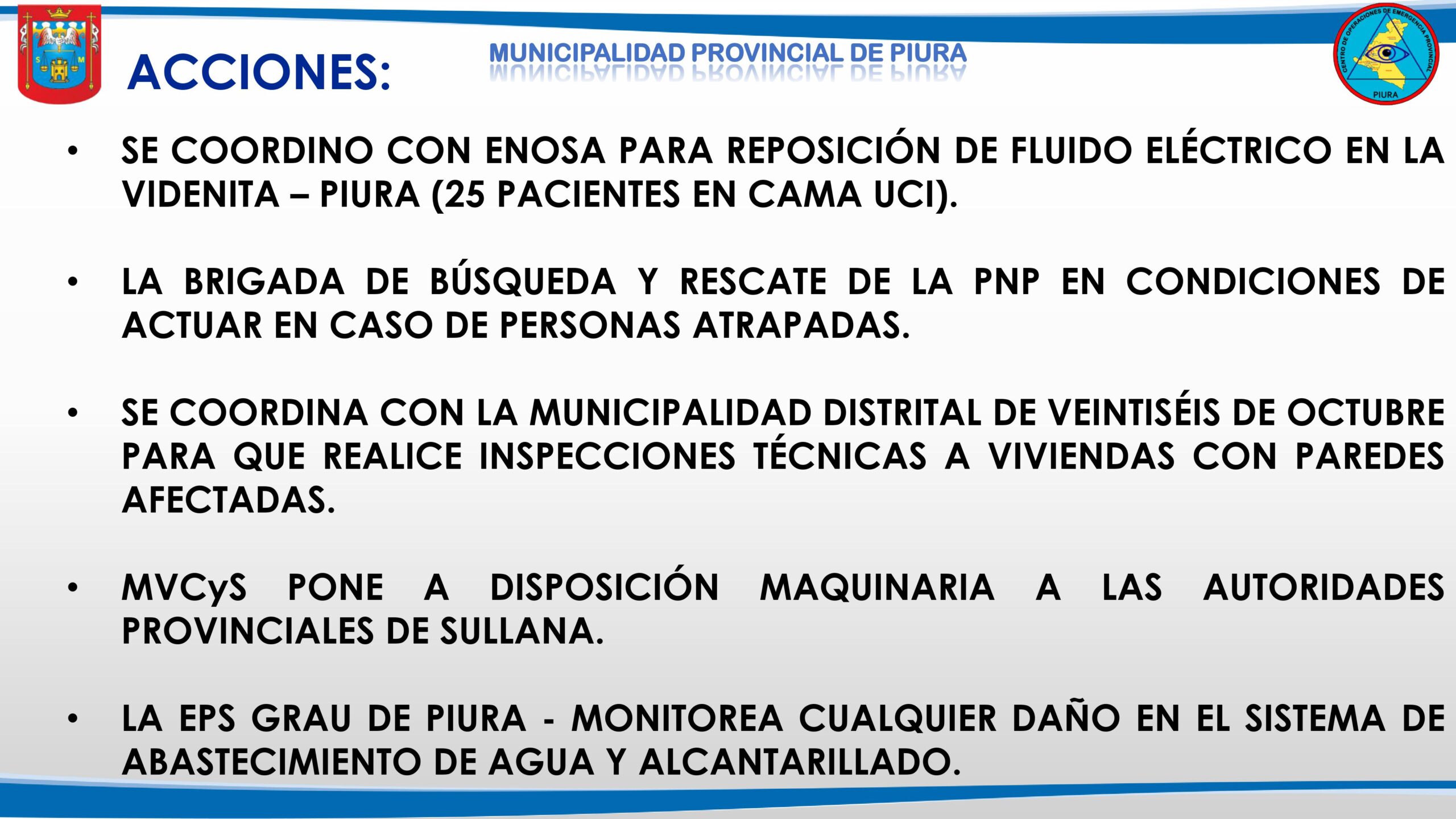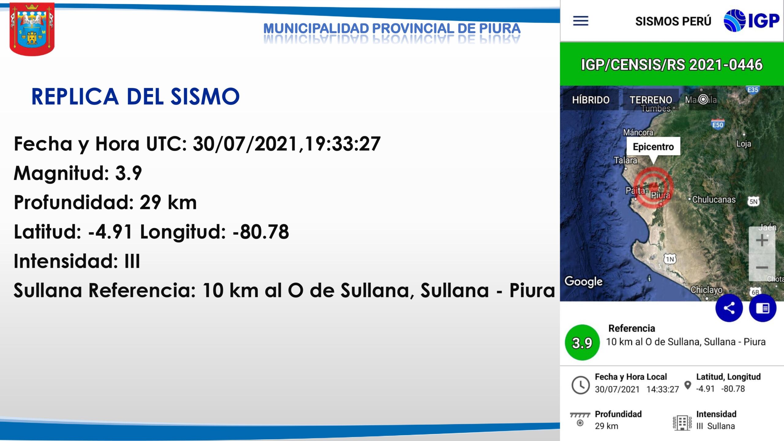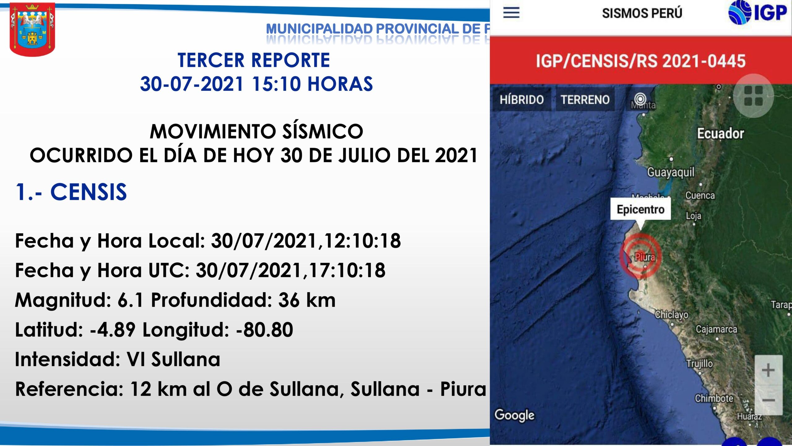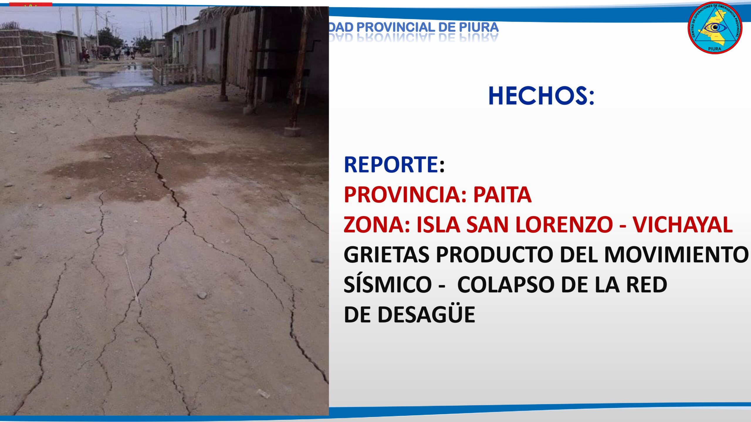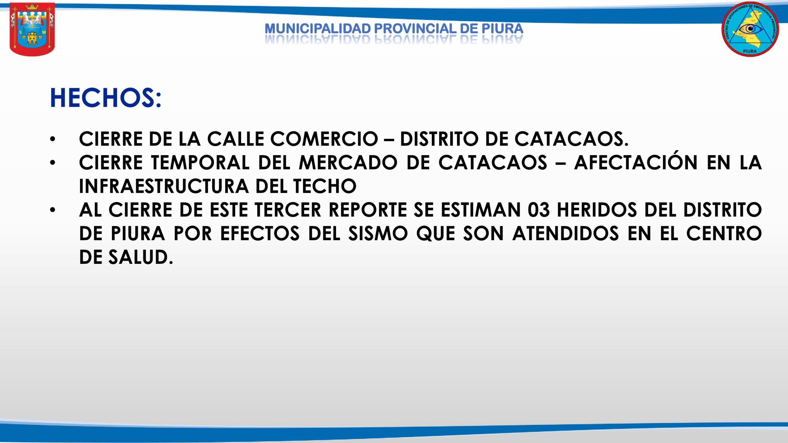 La Municipalidad de Piura y el COER emitieron un informe preliminar tras el sismo registrado en la región Piura.