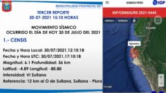 Piura: Reporte oficial del sismo de 6.1 registrado en la región