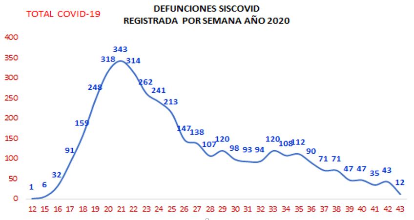 Casos de fallecidos por Covid en la región Piura, por semana. (Fuente: Diresa)
