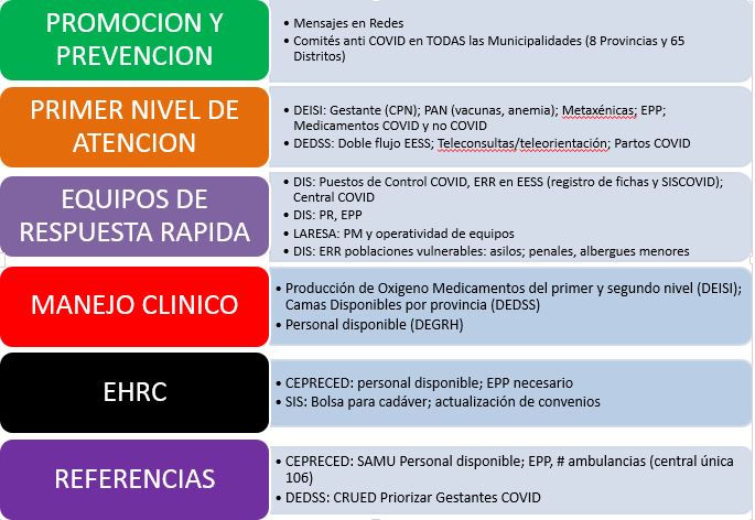 Sobre las denuncias de los centros de salud por falta de equipos de protección personal (EPP), anunció que dentro de cinco días recibirán una nueva compra. Añadió que en el nuevo plan han incluido una compra de EPP por 300 mil soles.