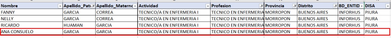 - Según el portal del Registro Nacional de Personal de Salud (INFORHUS), actualmente Ana García García no labora en ningún establecimiento del MINSA. Su última plaza la ocupó en el centro de salud de Buenos Aires hasta febrero de 2020.
