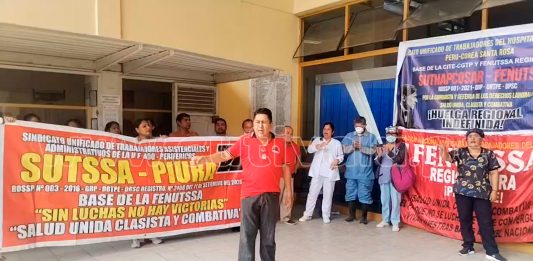 Las y los trabajadores del sector Salud acatan paro regional indefinido debido al incumplimiento del Gobierno Regional con los compromisos asumidos desde la gestión de Servando García Correa. Wilder Farfan Tarque, secretario general de la Federación Nacional Unificada de Trabajadores de Salud Administrativos (Fenutssa) – Piura, recordó que la huelga se realiza debido a que, … Sigue leyendo Piura: trabajadores de Salud acatan paro por desacuerdos con gobierno regional