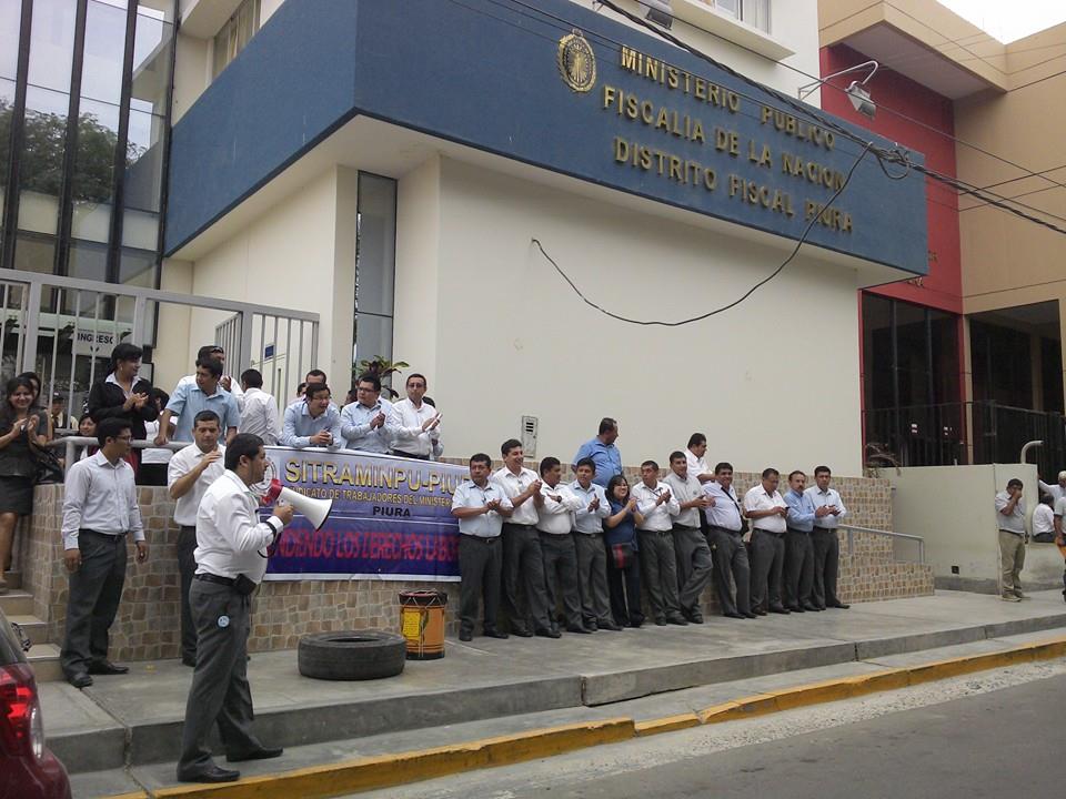 Los trabajadores y trabajadoras del sindicato del Ministerio Público de Piura acataron el paro nacional de 24 horas para exigir al Gobierno Central el aumento del presupuesto del año 2016.