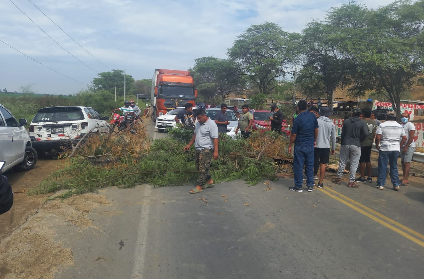 Asimismo, otro grupo de manifestantes se encuentran bloqueando la vía en el Km 184 de la carretera Interoceánica Olmos – Piura.