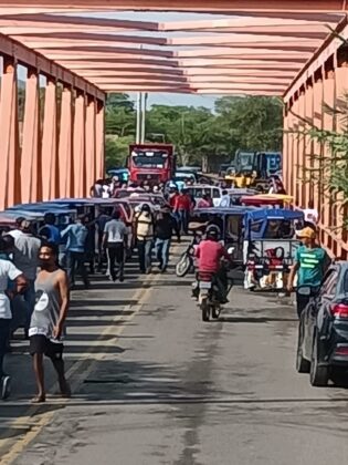Otro de los puntos donde se ha bloqueado el pase vehicular es a la altura del KM 1108 – carretera Panamericana Norte Sullana (puente internacional La Tina / Referencia puente Las Lomas).