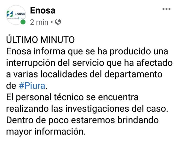 Enosa, a través de sus redes sociales, hizo el siguiente comunicado