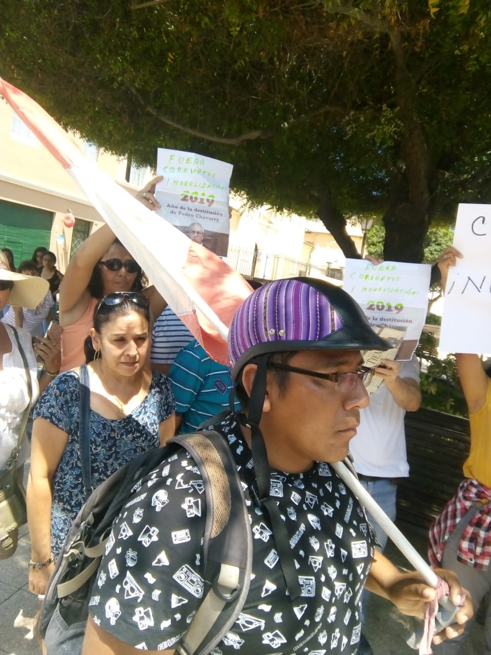 Con carteles en mano, los manifestantes exigen la destitución de Chávarry tras la decisión tomada, la misma que ha sido considerada por diversos analistas políticos como una clara obstrucción a la lucha contra la corrupción.