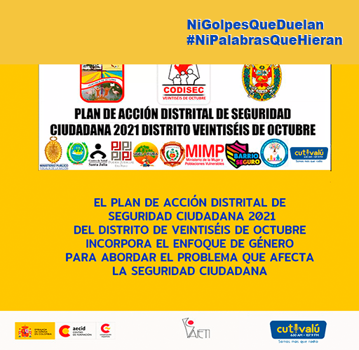 Cutivalú a través del Proyecto “Fortalecer la articulación entre Estado y sociedad civil para la prevención y la reducción de la violencia de género en Piura”, participó de la socialización del Plan de Acción Distrital de Seguridad Ciudadana 2021 de Veintiséis de Octubre.