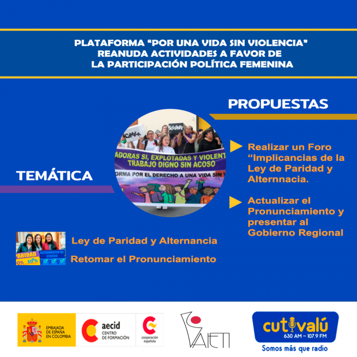 Reunión de trabajo de la Plataforma de la sociedad civil «Por una Vida Sin Violencia», para intercambiar experiencias desde sus institucionesy establecer una propuesta para incentivar y apoyar la participación femenina en la política.